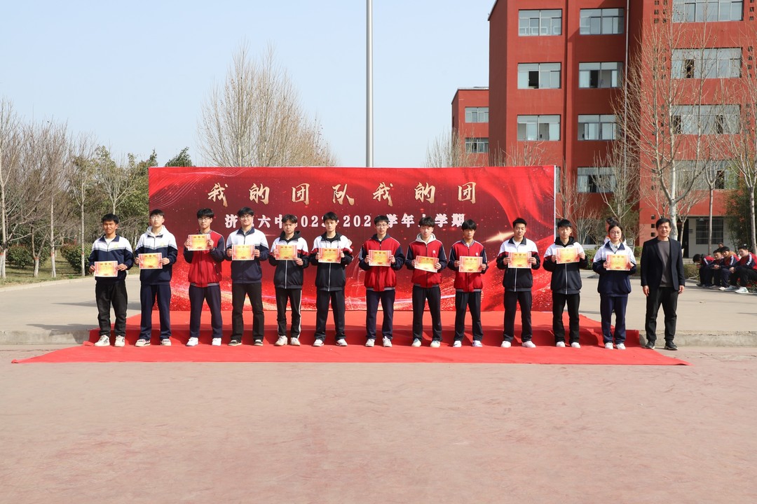 春归万物生,风暖踏新程。3月11日上午,为表扬先进典型,激扬奋进力量,济源六中举行“我的团队我的团”2023-2024学年上学期工作表彰会,全校师生齐聚操场,共同参与。 武云娜老师为艺术之星颁奖 教练杜青山为优秀运动员颁奖 团委书记彭丽为优秀国旗队员颁奖 第一党支部书记崔海波为优秀主持人、播音员、礼仪颁奖 创建办主任王文庆为寒假综合实践优秀班级团队颁奖 德育处副主任王庆彬为卓越班级颁奖 德育处主任王超为河南省优秀班干部、三好学生颁奖 在庄严的升旗仪式中,表彰会拉开了序幕。济源六中党总支副书记赵毅宣读了表彰名单。综合上学期取得的成绩,本次大会共表彰学校清廉建设团队、文明校园创建团队、信息技术团队、教育宣传团队、教研组建设团队、处室团队、年级团队等10个优秀教职工团队,并对省三好学生、省优秀学生干部、卓越班级、优秀国旗队员等8组优秀学生团队进行了表彰。 曾宪峰主任为高一团队颁奖 李永会主任为高二团队颁奖 郑成岗主任为高三团队颁奖 工会主席李中伟为处室团队颁奖 周主任为优秀员工颁奖 颁奖仪式后,济源六中党总支书记冯迎道进行了总结讲话。首先用“五个成绩”回顾并肯定了上学期全体师生辛勤付出、扎实迈进取得的丰硕成果。一是全体师生平安健康,学校无一起校园安全事故;二是师生文明素质进一步提升,家校齐心共建,协同育人持续向好;三是全校师生努力奋进和积极健身齐头并进,始终展现饱满昂扬的精气神;四是学校在社会上的认可度和美誉度持续提升;五是学校荣誉多多,捷报频传,师生在六中幸福指数直线上升。冯迎道最后鼓励全体师生要把每学期都当成一场马拉松,瞄着心中的目标,持续发力,追梦前进! 教学处副主任王钱钱为教研组建设团队颁奖 副校长赵勇为教育宣传团队颁奖 副校长赵勇为信息技术团队颁奖 党总支副书记赵毅为创建团队颁奖 党总支副书记赵毅为清廉建设团队颁奖 冯书记作总结讲话